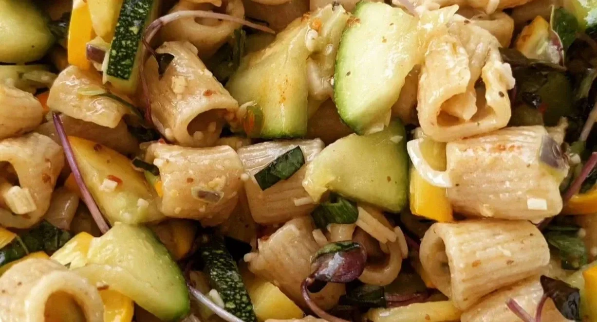 Squash is about to explode for the season. What are you doing with yours? Over here, we're making this spring pasta salad full of yellow zucchini & green zucchini! This is great for a hearty side dish or main, but I must say that it is amazing next to some barbecue!